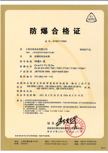 熱電阻隔爆證書